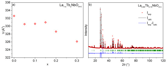 - Wachowski, S.; Kamecki, B.; Winiarz, P.; Dzierzgowski, K.; Mielewczyk-Gryń, A.; Gazda, M. Tailoring structural properties of lanthanum orthoniobates through an isovalent substitution on the Nb-site. Inorg. Chem. Front. 2018, 5, 2157–2166. [Google Scholar] [CrossRef]
