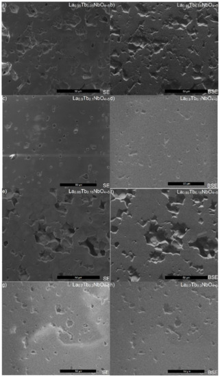 - Wachowski, S.; Mielewczyk-Gryn, A.; Gazda, M. Effect of isovalent substitution on microstructure and phase transition of LaNb1−xMxO4 (M = Sb, V or ta; x = 0.05 to 0.3). J. Solid State Chem. 2014, 219, 201–209. [Google Scholar] [CrossRef]
