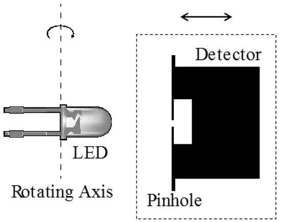 Figure 3 consists of the LED on a motorized rotary stage and the detector attached to an optical rail, so the angular intensity distribution of the LED can be measured at different distances, as illustrated in