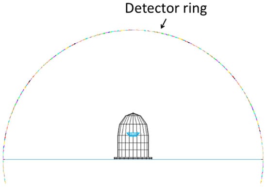 Figure 5, positioned on a circular path, centered at the origin point of the system. This is just like what is used in the measurement setup, and the area of each detector corresponds to a cone base with 1° apex angle from the origin.