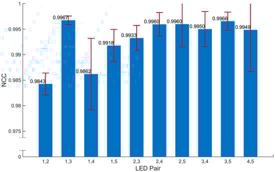 The NCCs between all the possible LED pairs are shown in