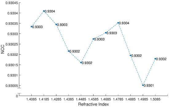 Figure 13 shows that the change in NCC is minute. After averaging the NCC values across all the distances in