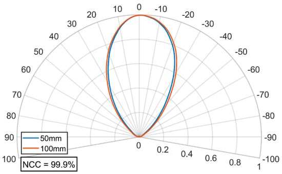 Figure 24, the NCC between the normalized angular intensity distributions measured at 50 mm and 100 mm are as high as 99.9%, implying that the distance is already in the far-field region.