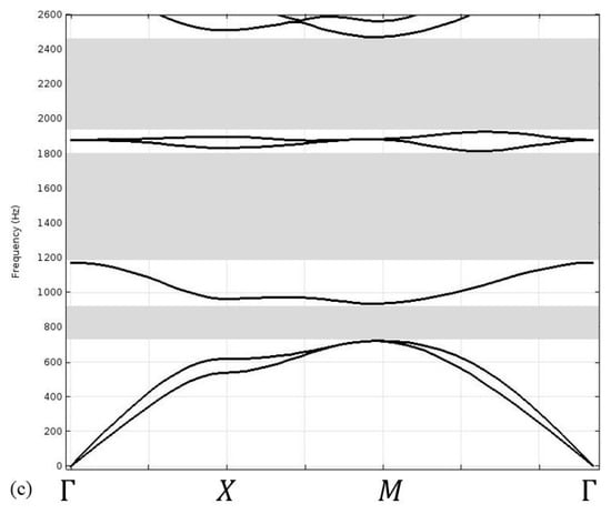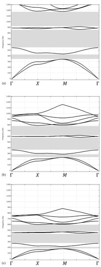 - Sigalas, M. Elastic Wave Band Gaps and Defect States in Two-dimensional Composites. J. Acous. Soc. Am. 1997, 101, 1256. [Google Scholar] [CrossRef]