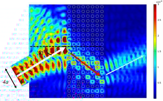 - Liu, W.; Su, X. Collimation and Enhancement of Elastic Transverse Waves in Two-dimensional Solid Phononic Crystals. Phys. Lett. A 2010, 374, 29682971. [Google Scholar] [CrossRef]