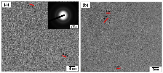A Renishaw InVia Raman microscope (Renishaw, Gloucestershire, United Kingdom) was used to estimate the Raman spectrum with an excitation wavelength of 514 nm. The structure morphology of the sample thin film was studied via JOEL-2011 High Resolution Transmission Electron Microscopy (Jeol, Tokyo, Japan). The Rigaku 2500 X-ray Diffractometer (Rigaku, Austin, TX, USA) was used to analyze the amorphous structure of the sample thin films. Furthermore, the magnetoresistance measurement was done through the quantum design physical property measurement system. The standard indium pressing technique was used to prepare the metal electrodes as shown in Figure 1b by using the standard four-probe method for a resistance measurement.