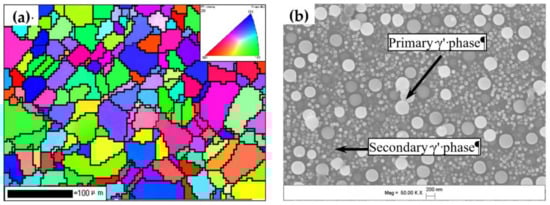 The superalloy Waspaloy is a nickel-based precipitation strengthened superalloy. Compared to the widely used nickel-based superalloy Inconel 718, Waspaloy does not contain Nb element, but has more Al and Ti elements to constitute the γ′ phase which is the main strengthened phase of the Waspaloy [1,2], and hence the strength property of Waspaloy is superior to that of Inconel 718 [3,4]. Waspaloy possesses high strength together with excellent oxidation resistance and fatigue properties [1]. Waspaloy is widely used in the rotating parts of aviation engine turbine discs and high temperature fasteners due to its high degree of alloying and high resistance to the corrosion of the gas [2].