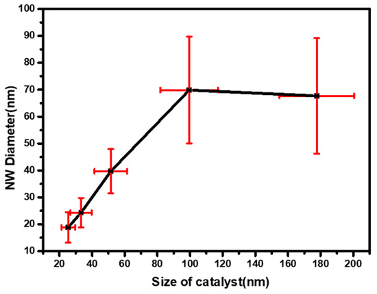 Relationship between the NW diameter grown at 750 °C and average size of the catalyst.