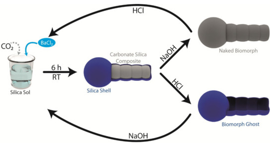 - Kellermeier, M.; Colfen, H.; Garcia-Ruiz, J.M. Silica biomorphs: Complex biomimetic hybrid materials from “sand and chalk”. Eur. J. Inorg. Chem. 2012, 2012, 5123–5144. [Google Scholar] [CrossRef]