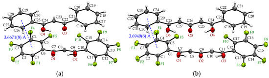 | C-F···π [C-F···Cg(C6F5)] | C4-F4···π(C29-34), 3.4806(11) Å | C4-F4···π(C29-34), 3.4959(11) Å |