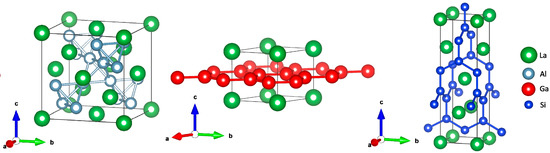 - Laves, F. Die Kristallstrukturen von CaGa2, LaGa2 und CeGa2. Naturwissenschaften 1943, 11–13, 145. [Google Scholar] [CrossRef]