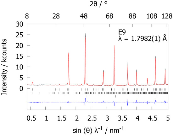 - Franz, A.; Hoser, A. E9: The Fine Resolution Powder Diffractometer (FIREPOD) at BER II. J. Large-Scale Res. Facil. 2017, 3, A103. [Google Scholar] [CrossRef]
