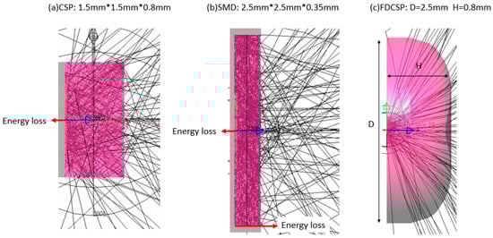Light tracing profile of (a) CSP, (b) SMD, and (c) FDCSP.
