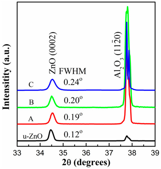 - Yao, B.; Shen, D.Z.; Zhang, Z.Z.; Wang, X.H.; Wei, Z.P.; Li, B.H.; Lv, Y.M.; Fan, X.W. Effects of nitrogen doping and illumination on lattice constants and conductivity behavior of zinc oxide grown by magnetron sputtering. J. Appl. Phys. 2006, 99, 123510. [Google Scholar] [CrossRef]