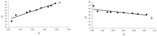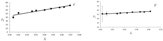 Evolution of the Eulerian finite strain fE versus the “normalized stress” FE. The solid line is the weighted linear fit of the data for V, a, b and c lattice parameters.