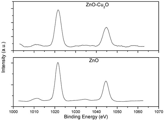 The Zn 2p X-ray photoelectron spectroscopy (XPS) of ZnO and ZnO-Cu2O.