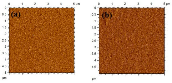 The atomic force microscopy (AFM) of the surface of ZnO films with and without SF6 plasma treatment, (a) without passivation, (b) with passivation.