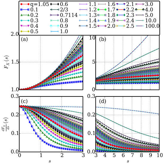 q dependent enhancement factor. The comparison of the exchange enhancement factor in exchange energy functionals in the vdW-DFq method for various q values. The reduced density gradient s is in the range of (a) 0–3 low-gradient domain and (b) 3–10 high-gradient domain. The B86q and B86R denotes the case of and 0.7114 respectively. The is illustrated in the range of (c) 0–3 and (d) 3–10.