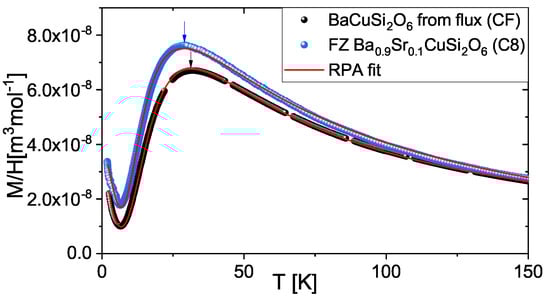 - Puphal, P.; Sheptyakov, D.; van Well, N.; Postulka, L.; Heinmaa, I.; Ritter, F.; Assmus, W.; Wolf, B.; Lang, M.; Jeschke, H.O.; et al. Stabilization of the tetragonal structure in(Ba1-xSrx)CuSi2O6. Phys. Rev. B 2016, 93, 174121. [Google Scholar] [CrossRef]