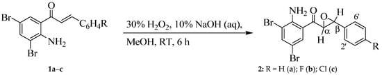 2.2. Typical Procedure for Epoxidation of the 2-Aminochalcones 2a–c