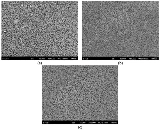 Figure 1 shows scanning electron micrographs of S1, S2, and S3, respectively. The crystal grains of the AZO/ITO films are shown to grow with increasing N2 flow.