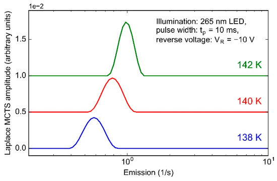 In addition, we analyzed the Ev + 0.28 eV trap by means of Laplace MCTS measurements, as shown in Figure 5. A well-defined single emission line was detected.