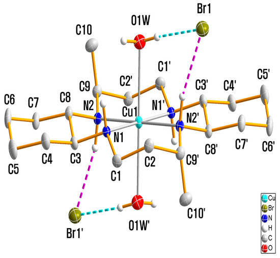 APA StyleJeon, S., Moncol, J., Mazúr, M., Valko, M., & Choi, J.-H. (2019). Synthesis, Crystal Structure, Spectroscopic Properties, and Hirshfeld Surface Analysis of Diaqua [3,14-dimethyl-2,6,13,17 tetraazatricyclo(16.4.0.07,12)docosane]copper(II) Dibromide. Crystals, 9(7), 336. https://doi.org/10.3390/cryst9070336