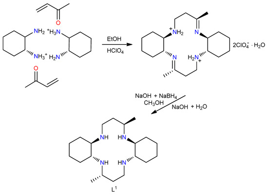 - Lim, I.-T.; Kim, C.-H.; Choi, K.-Y. Synthesis and structural characterization of nickel(II) complexes of 3,14-diethyl-2,6,13,17-tetraazatricyclo(14.4.0.07,12)docosane with inorganic salts. Polyhedron 2015, 100, 43–48. [Google Scholar]