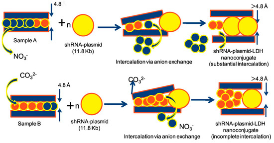 - Rahaman, S.H.; Bhattacharjee, A.; Saha, S.; Chakraborty, M.; Chakraborty, J. shRNA intercalation in CaAl-LDH nanoparticle synthesized at two different pH conditions and its comparative evaluation. Appl. Clay Sci. 2019, 171, 57–64. [Google Scholar] [CrossRef]