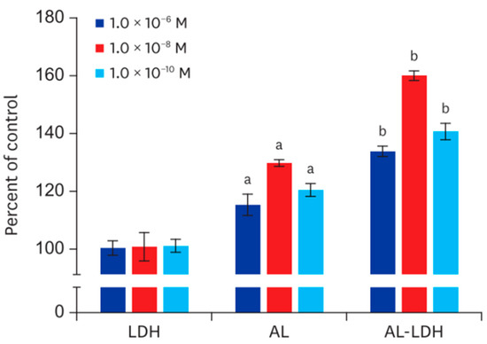 - Piao, H.; Kim, M.H.; Cui, M.; Choi, G.; Choy, J.H. Alendronate-anionic clay nanohybrid for enhanced osteogenic proliferation and differentiation. J. Korean Med. Sci. 2019, 34, e37. [Google Scholar] [CrossRef]