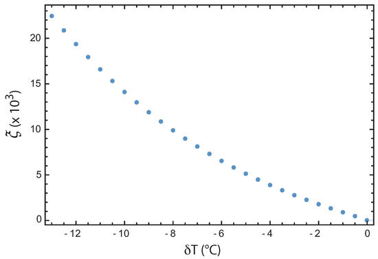 Finally, Figure 8 shows the drag coefficient as a function of the temperature difference . The calculations were performed for an elementary edge dislocation propagating at 20 m/s—a typical value for velocity in the experiments with 8CB (see the next section). This graph shows that strongly decreases when the temperature increases and tends to 0 when . This behavior is due to the critical behavior of the elastic modulus B that vanishes at .