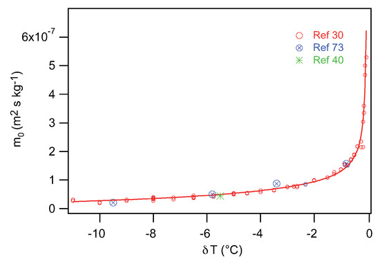 where A is a numerical coefficient close to 1, is the so-called penetration length by denoting by K (B) the bend (compression) modulus of the layers, is the permeation coefficient and is the shear viscosity parallel to the layers [7,9,21,22]. An important result of this calculation is that the mobility is independent from the Burgers vector of the dislocation. This model also predicts a critical behavior for the mobility near the transition temperature when the transition is second-order. It is the case in pure 8CB [23,24] where diverges as with [9] and diverges as [25]. Because and do not change significantly at the transition, the hydrodynamic theory predicts that m must diverge as , i.e., as in 8CB.