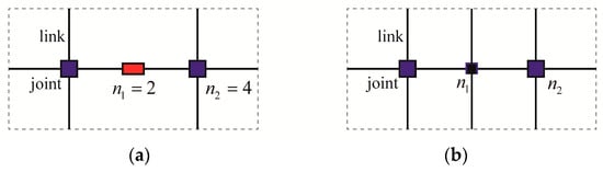 where the right term in Equation (3) describes the angle between the adjacent members connected by the joints with n1 links, and the left term in Equation (3) denotes the inner angle of an n2-sided regular polygon. Then, Equation (3) can be rewritten as