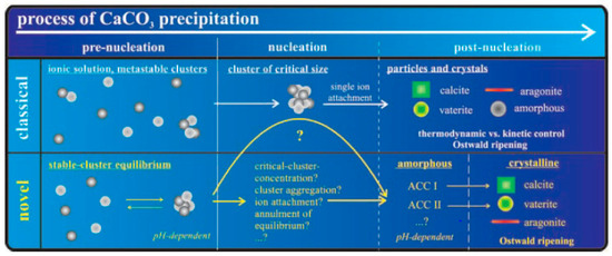 - Gebauer, D.; Völkel, A.; Cölfen, H. Stable Prenucleation Calcium Carbonate Clusters. Science 2008, 322, 1819–1822. [Google Scholar] [CrossRef]