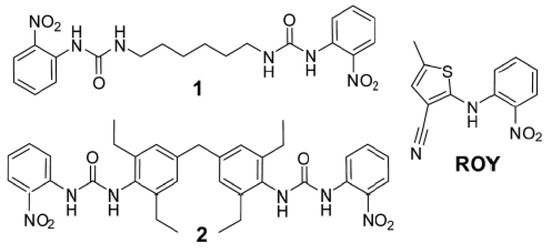 - Kwon, O.P.; Kwon, S.J.; Jazbinsek, M.; Choubey, A.; Losio, P.A.; Gramlich, V.; Günter, P. Morphology and Polymorphism Control of Organic Polyene Crystals by Tailor-Made Auxiliaries. Cryst. Growth Des. 2006, 6, 2327–2332. [Google Scholar] [CrossRef]