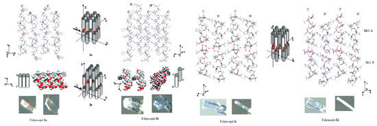 - Vasudev, P.G.; Shamala, N.; Balaram, P. Nucleation, Growth, and Form in Crystals of Peptide Helices. J. Phys. Chem. B 2008, 112, 1308–1314. [Google Scholar] [CrossRef] [PubMed]