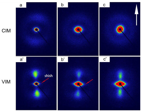 - Wang, Y.; Hou, F.; Mi, D.; Zhou, M.; Jiang, Y.; Zhang, J. Self-Reinforcement of Polypropylene Lid-Shaped Samples Induced by Increasing Shish-Kebab Content: Practical Application of Vibration Injection Technology. Ind. Eng. Chem. Res. 2018, 57, 8620–8629. [Google Scholar] [CrossRef]