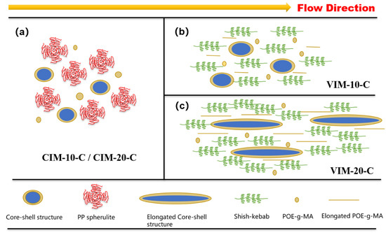 - Mi, D.; Xia, C.; Jin, M.; Wang, F.; Shen, K.; Zhang, J. Quantification of the Effect of Shish-Kebab Structure on the Mechanical Properties of Polypropylene Samples by Controlling Shear Layer Thickness. Macromolecules 2016, 49, 4571–4578. [Google Scholar] [CrossRef]