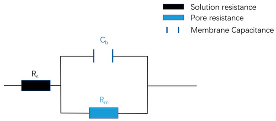 According to the pore-impedance relationship, the membrane resistance Rm can be attributed to the impediment to the ions passing through the pores [30,31], which can be computed by the Equation below [32].