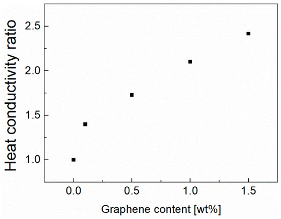 The variation of the heat conductivity ratio of the membranes as a function of the graphene content.