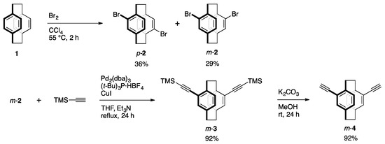 Synthesis of pseudo-m-diethynyl[2.2]paracyclophane m-4.