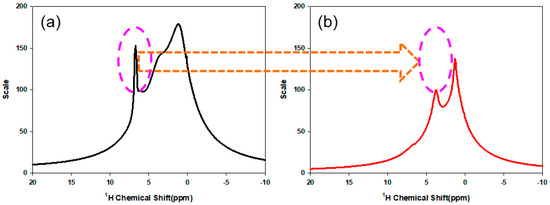 1H MAS NMR spectra of the TCR-1 sample. (a) Before hydrolysis, (b) After hydrolysis.