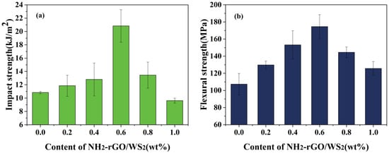 Impact strength (a) and flexural strength (b) of BMI composites with different contents of NH2-rGO/WS2 fillers.