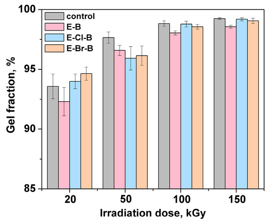 - Majumder, P.S.; Bhowmick, A.K. Structure-property relationship of electron-beam-modified EPDM rubber. J. Appl. Polym. Sci. 2000, 77, 323–337. [Google Scholar] [CrossRef]