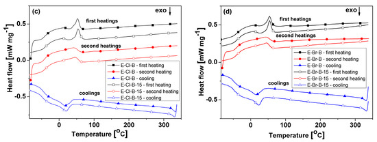 | E–Cl–B–15 | −33 | 54 | 8.95 | −35 | 45 | 13.3 | 20 | −16.35 | 27 (h1) | −2.49 (h1) |