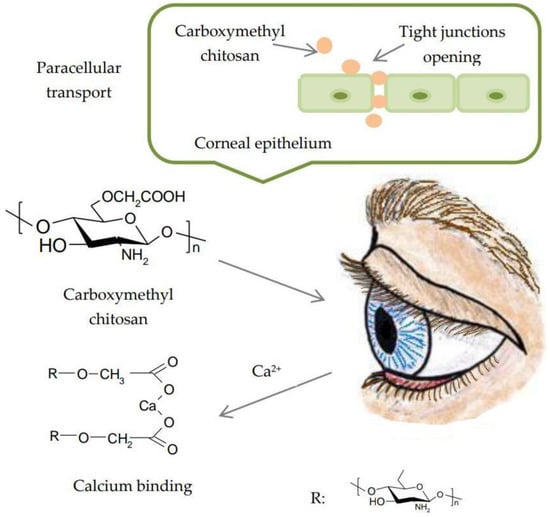 Paracellular transport of carboxymethyl chitosan through the corneal epithelium. Reproduced with permission from Ref. [84]. Copyright © Elsevier, 2014.