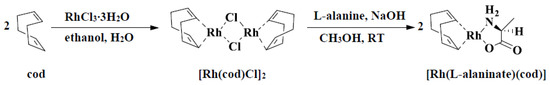 According to Scheme 1, the [Rh(L-alaninate)(cod)] complex was synthesized and isolated; the following reaction procedures were conducted under dry nitrogen.