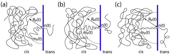 - Saito, T.; Sakaue, T. Cis-trans dynamical asymmetry in driven polymer translocation. Phys. Rev. E 2013, 88, 042606. [Google Scholar] [CrossRef] [PubMed]
