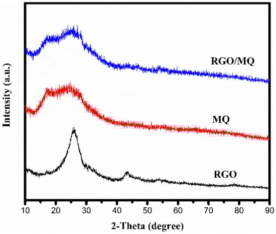 X-ray diffraction (XRD) patterns of RGO, MQ and RGO/MQ.