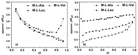 Speciation diagrams of M-l-Ala, M-l-Val and M-l-Leu.